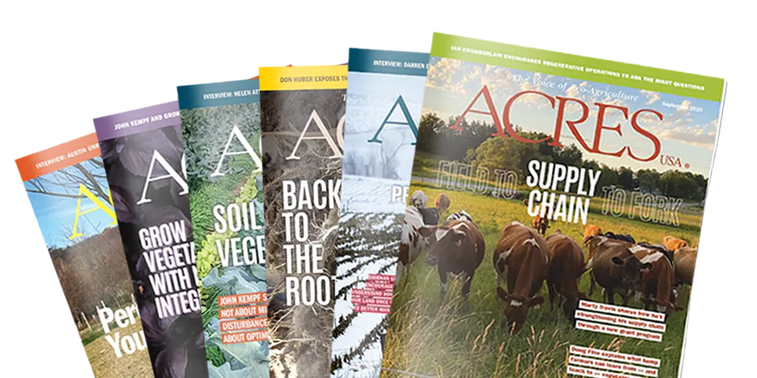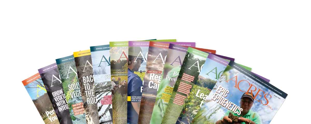 Acres U.S.A. is North America’s oldest publisher on production-scale organic and regenerative farming. For more than 50 years, our mission has been to help farmers, ranchers and market gardeners grow food profitably, regeneratively, and with nature in mind.