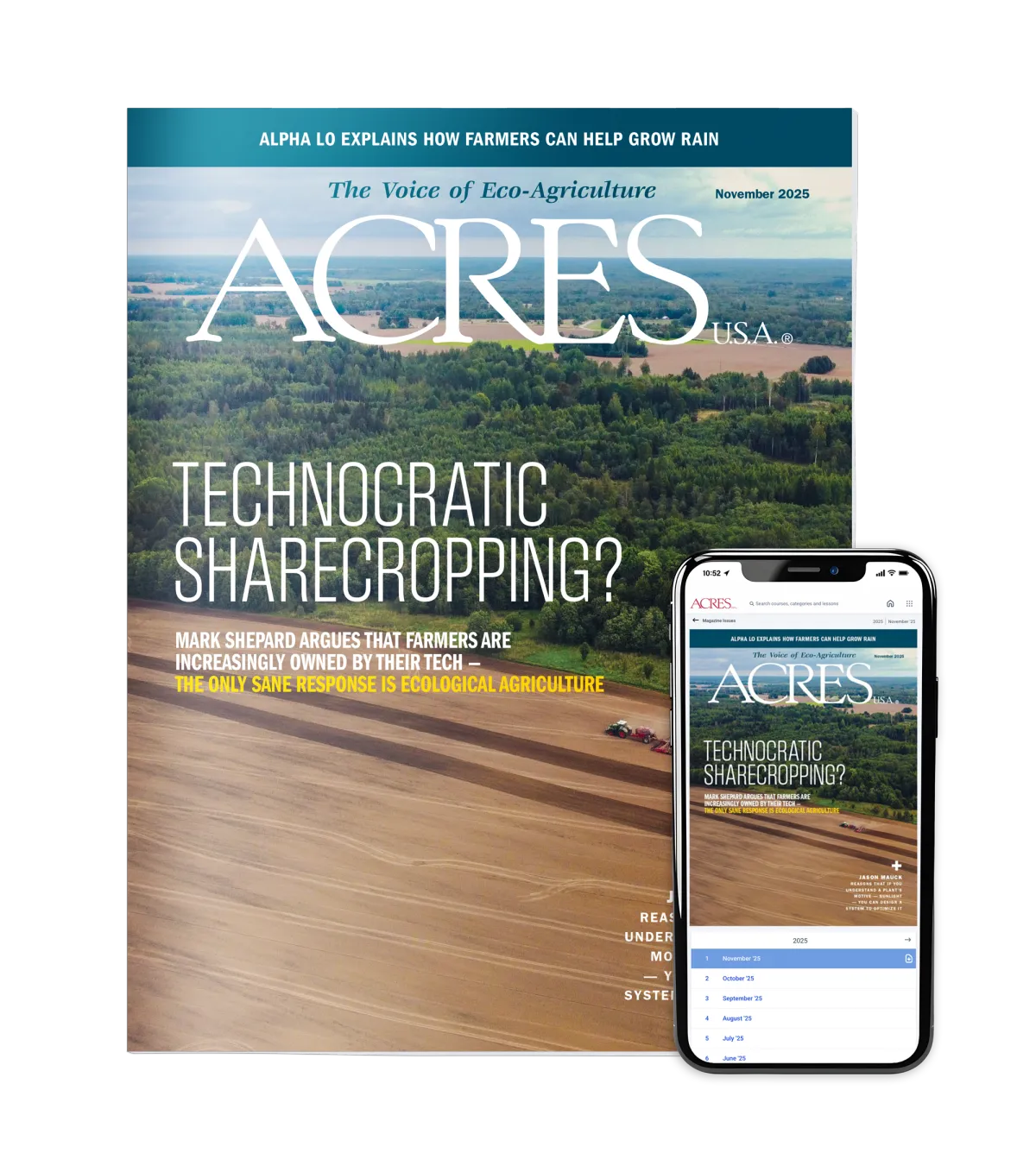 Trusted by thousands of growers, Acres U.S.A. delivers monthly insights for healthier soil and stronger profits, built for today’s challenges. Start your Eco-Farmer membership today!